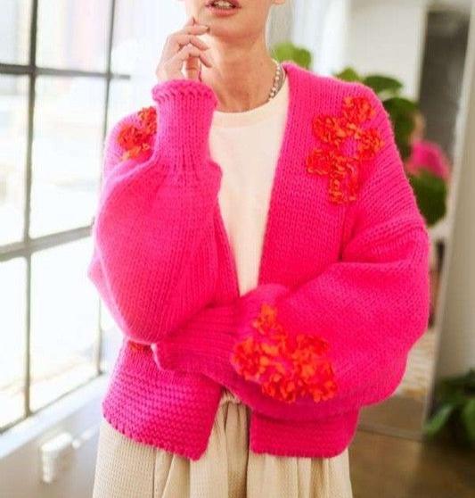 A floral applique open front drop shoulder cardigan is a stylish and feminine addition to your wardrobe. The floral appliqués add a touch of whimsy and texture to the cardigan, creating a romantic and delicate look. The open front design allows for effortless layering over any outfit, while the drop shoulder silhouette adds a relaxed and cozy feel. This cardigan is perfect for adding a soft and elegant touch to your everyday outfits, whether you're running errands or meeting friends for a coffee date. The floral appliqué detailing adds a special and eye-catching element that sets this cardigan apart from the rest.